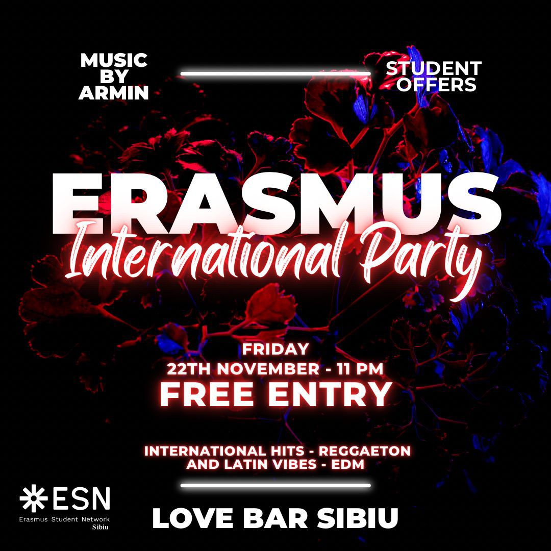 Friday, DJ Armin on the decks bringing the hottest 2000s hits, reggaeton and Latino music! The event is in cooperation with students from Uni Bucharest. It’s a perfect chance to meet new people, enjoy good vibes, and kick off the weekend together!